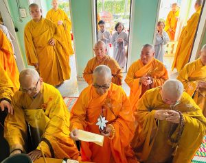 Chúng đệ tử cung đón đức Hoà thượng thượng Viên hạ Định quang lâm chứng...
