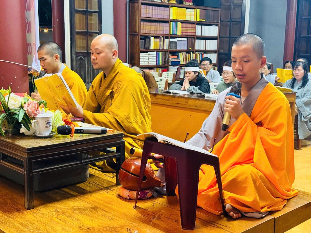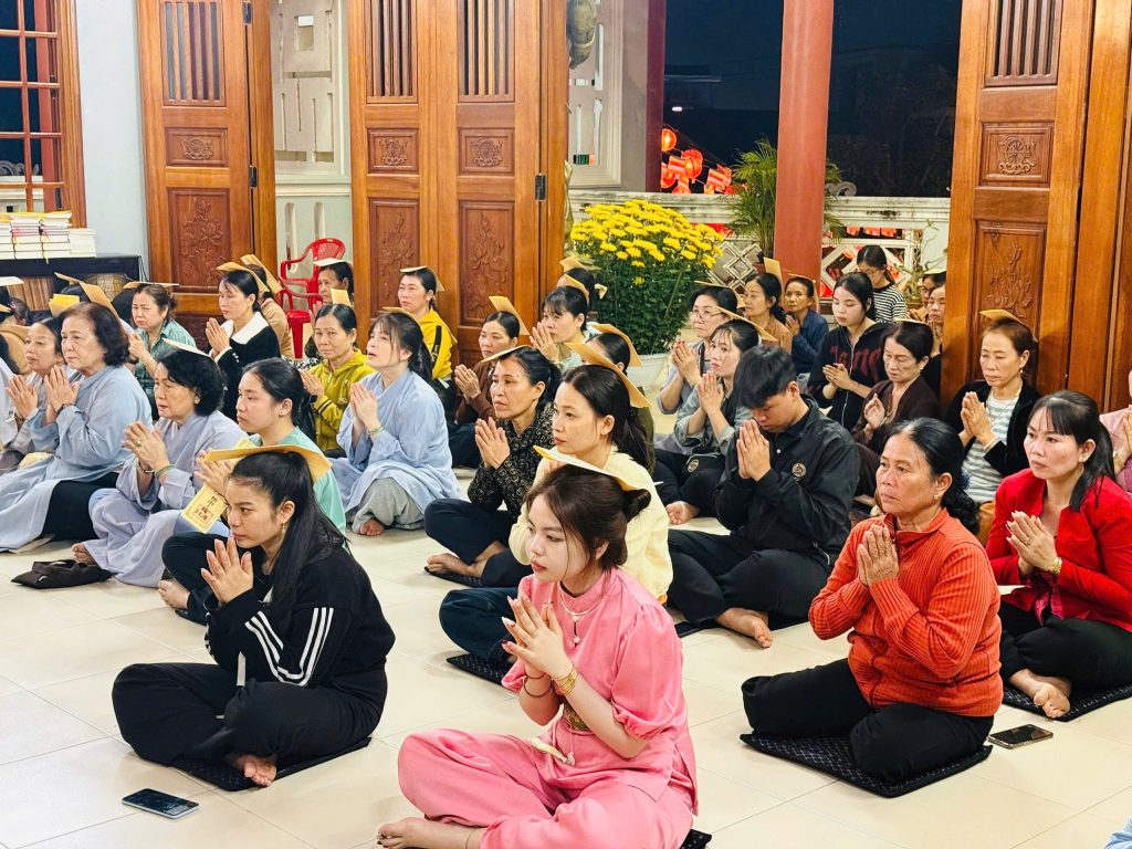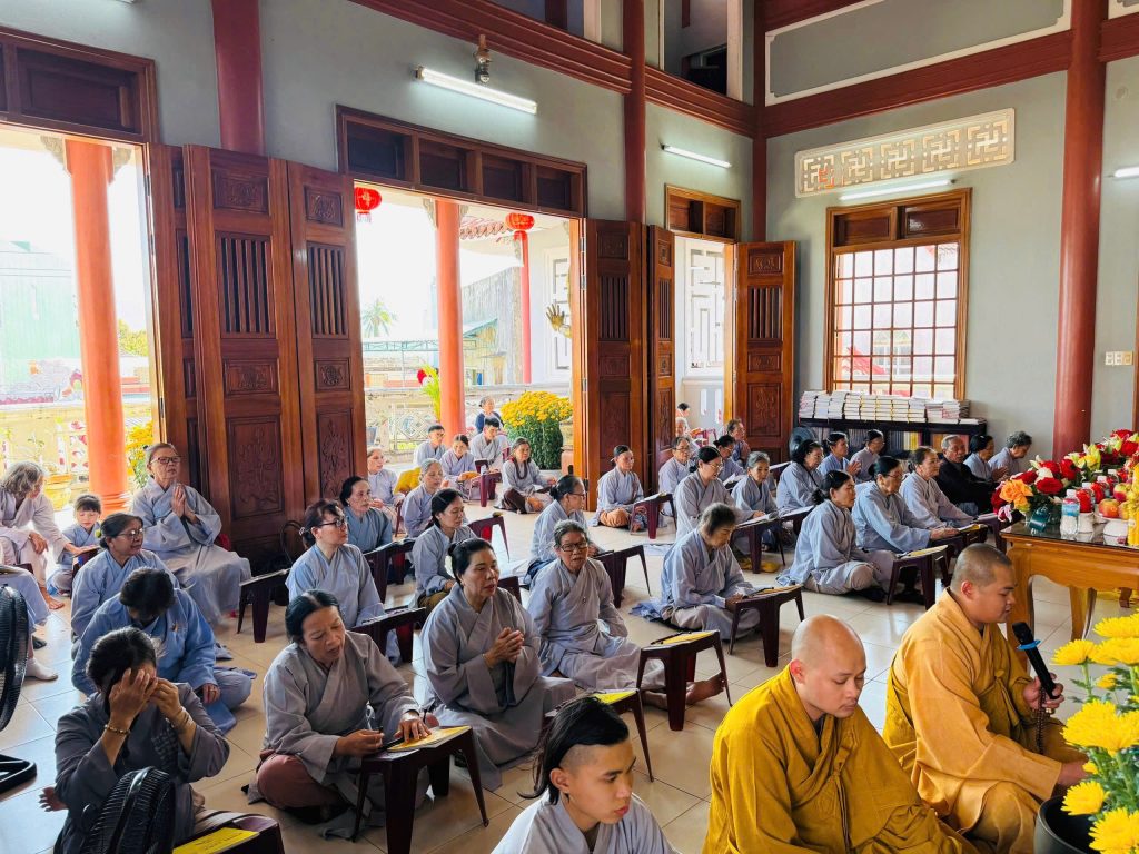 Khi ánh nắng dịu nhẹ phủ xuống sân chùa, đại chúng đồng vân tập nơi chánh điện, nhất tâm trì tụng danh hiệu Đức Dược Sư Lưu Ly Quang Vương Phật. Tiếng chuông, tiếng mõ hòa cùng lời kinh trầm hùng vang lên giữa không gian thanh tịnh, như từng giọt cam lồ thấm mát tâm hồn, xoa dịu những bất an và khổ lụy của đời thường.