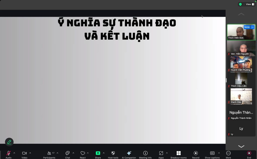 Cảm ơn quý thầy và các bạn trẻ đã cùng tạo nên một buổi học đầy cảm hứng và kết nối. Dù chỉ qua Zoom, nhưng năng lượng tu học đã lan tỏa rõ ràng – như một ngọn đèn nhỏ, đủ thắp sáng những tâm hồn đang đi tìm đường.