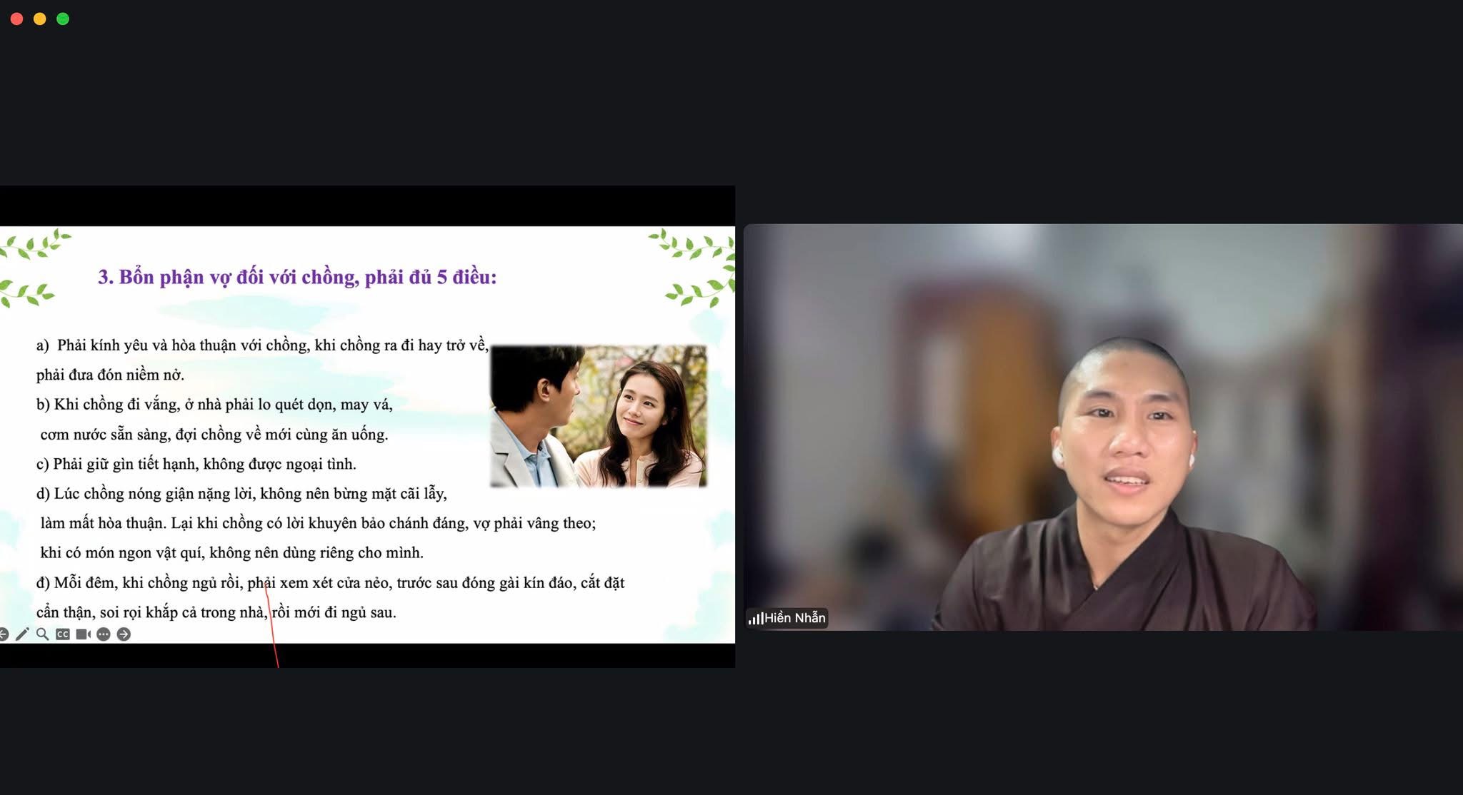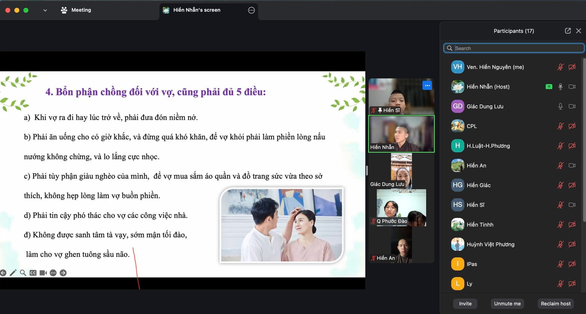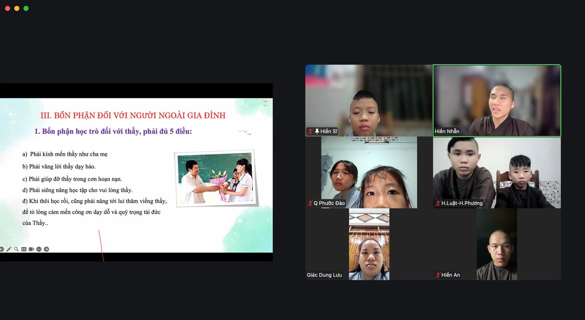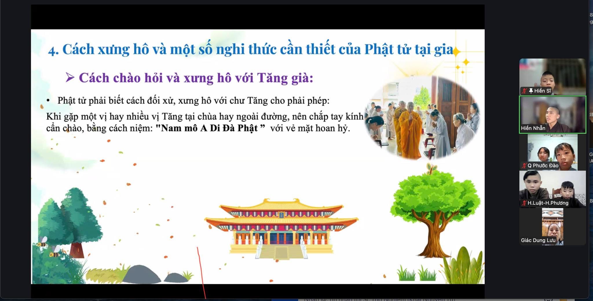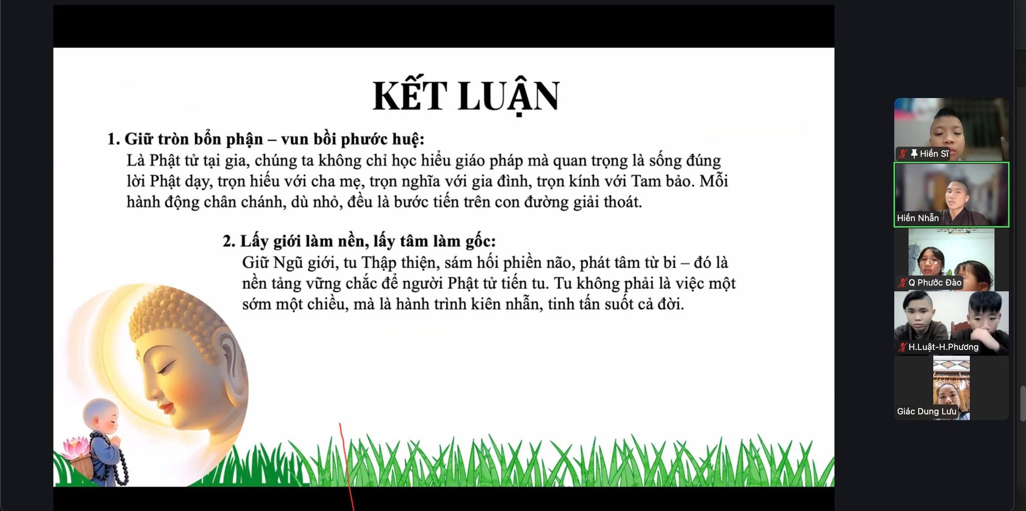 Nhiều Phật tử chia sẻ niềm hoan hỷ khi được học giáo pháp thiết thực giữa đời sống hiện đại. Dù khoảng cách địa lý khác nhau, nhưng thông qua lớp học trực tuyến qua Zoom, đại chúng vẫn cùng nhau kết nối trong năng lượng chánh pháp, cùng nhau vun bồi phước trí song tu.